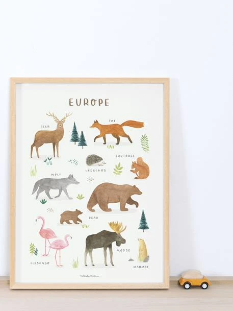 Petit voyage au cœur de l’Europe avec l’univers Living Earth de la marque Lilipinso, découvrez une affiche représentant les animaux du continent : cerf, renard, ours, écureuil, flamant rose… !