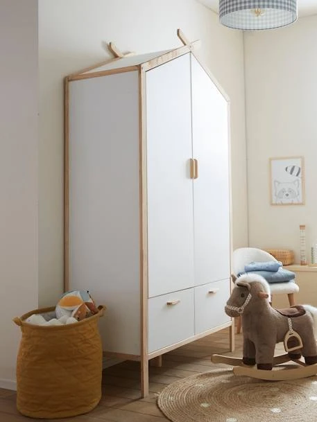 Une armoire originale, pratique pour ranger les habits avec ses différents rangements et propice aux rêves d’aventures des enfants grâce à sa forme cabane créative !