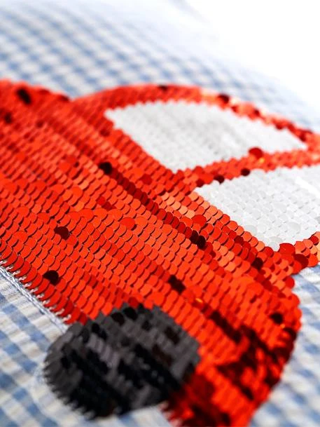Coussin à sequins réversibles EN VOITURE SIMON en coton seersucker, garnissage polyester.