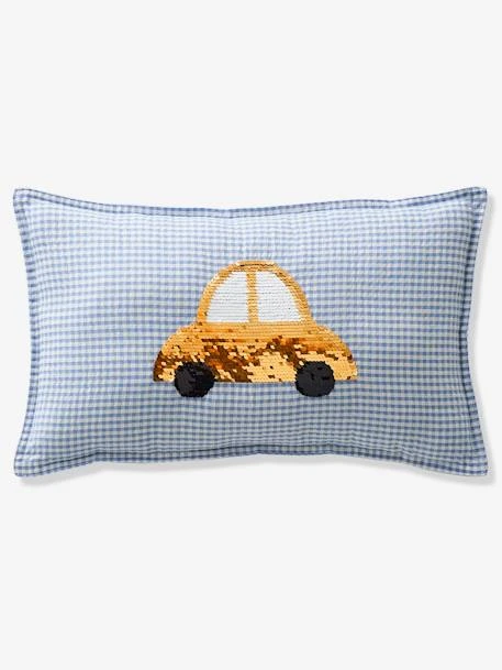 Un adorable coussin qui amusera les enfants avec sa voiture en sequins réversibles ! On craque pour la belle matière seersucker dans l’air du temps, qui donne du relief à l’imprimé vichy.