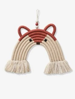 Déco murale Renard Arc-en-ciel en coton, perles en bois.