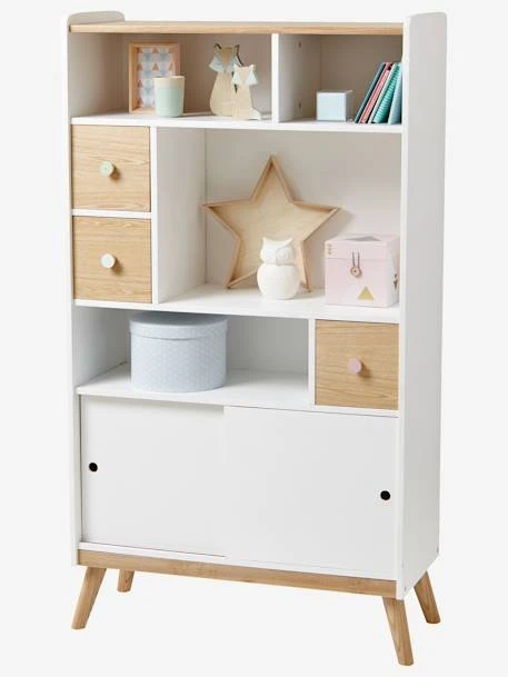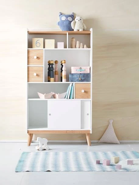 Esprit nature pour cette bibliothèque qui allie l’élégance du bois, coloris tendance et lignes tendres ! Fonctionnelle, de belle capacité de rangement et bien pensée, elle est livrée avec 3 jeux de poignées de couleurs différentes pour s’accorder à la chambre de votre enfant !