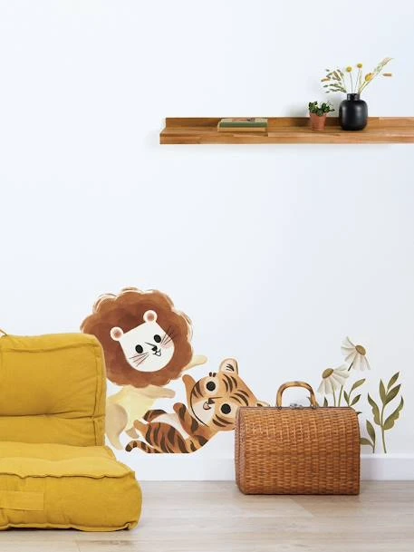 Retrouvez lâunivers Felidae de Lilipinso avec ces stickers muraux aux couleurs chaudes et aux motifs vintages. DĂ©couvrez un tigre et un lion qui jouent avec les fleurs.   Â